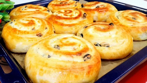 Как приготовить вкусные нежные булочки с начинкой.Булочки с творогом и изюмом.