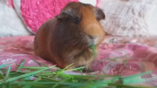 Морская свинка ест травку