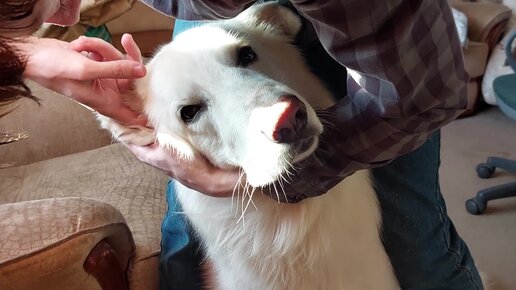 Чистим уши белой швейцарской овчарке