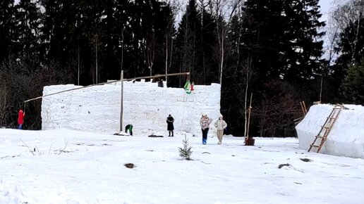 Наблюдаем, как строится снежный городок для празднования Масленицы