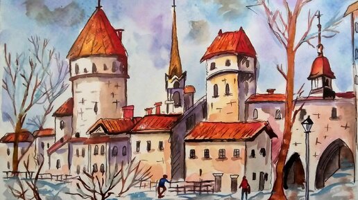 Тает снег, пришла весна. Пейзаж акварелью пошагово. С ООБЪЯСНЕНИЕМ.