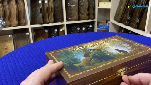Русское лото Мишки в лесу цветное, в деревянной шкатулке