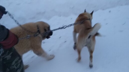 Прогулка с кавказкой овчаркой и заподно сибирской лайкой