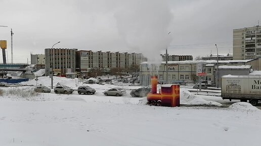 Новосибирск, улица Ипподромская. Здесь на тепловом узле симпатичный паровозик.
