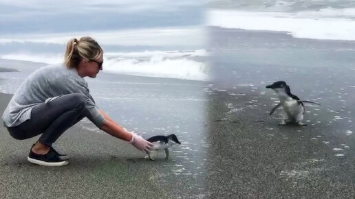 Девушка помогла пингвину и отпустила его в океан. Трогательная история