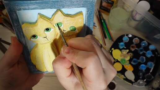 Панно с котиками из картона и яичных лотков. Простая техника, доступные материалы, отличный декор.