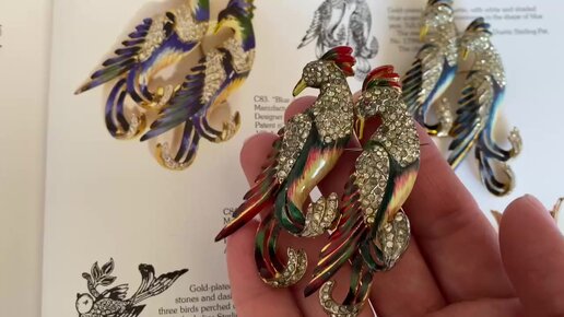 Винтажная брошь дуэт Coro duette sterling Пиицы
