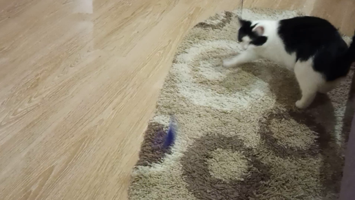 Кошка Умка играет с разными игрушками, а потом отдыхает в своей лежанке