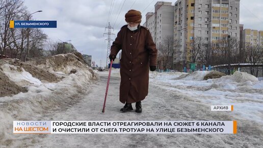 Городские власти отреагировали на сюжет 6 канала и очистили от снега тротуар на улице Безыменского