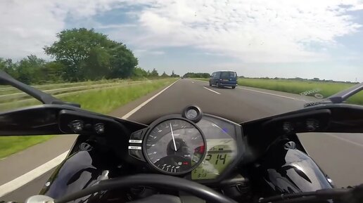 Гонка на максимальной скорости Yamaha R1 на автобане