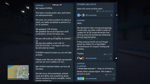 Хакеры готовы слить всю информацию украденную у NVIDIA