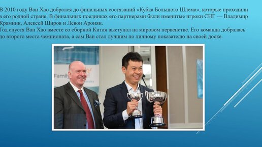 Про Ван Хао - это китайский шахматист такой. Повод узнать о талантливом гроссмейстере больше
