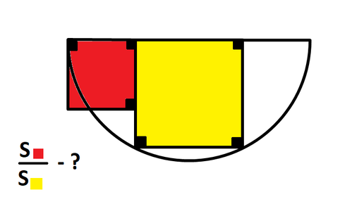 Найти отношение площадей квадратов, расположенных на диаметре окружности.