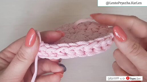 Первый ряд. От дна к стенкам. Вяжем корзинку. Ссылка в описании