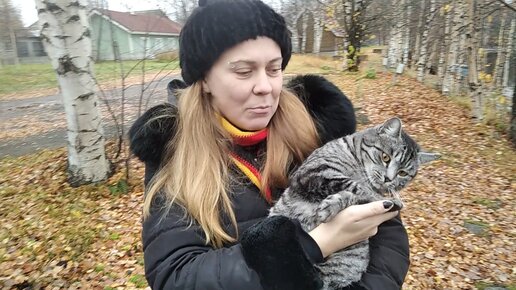 Снял на видео свою супругу с карельским котиком рядом с озером Куйта