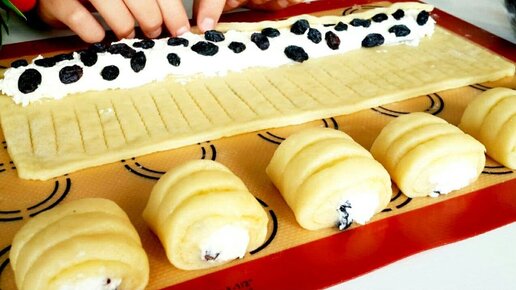 Нежные рассыпчатые печенье к чаю.Печенье с нежной творожной начинкой и изюмом.