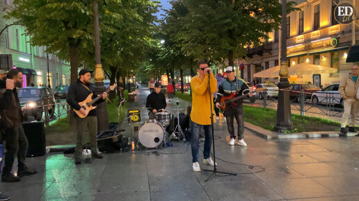 Уличные музыканты играют под дождем хит «Слишком влюблен» – атмосферная кавер-версия песни группы «Нервы»