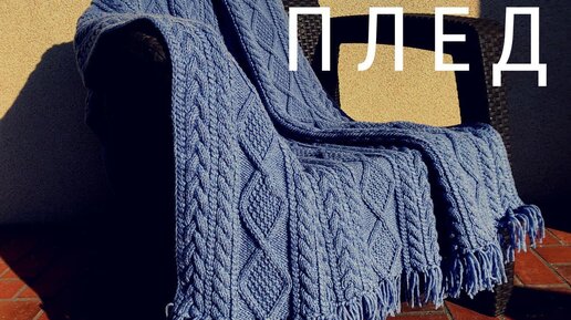 Теплый плед спицами || Косы и Араны