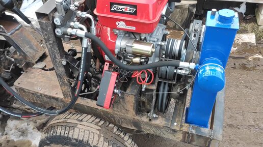 Минитрактор полный привод 4х4. Работа задней навески на гидравлике.