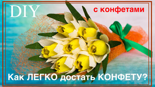 Букет из конфет. Нарциссы из бумаги с конфетами