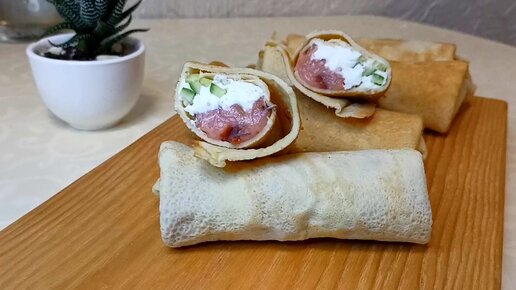 Блины с красной рыбой и творожным сыром (делюсь рецептом)