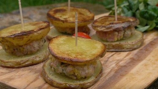 Картофельные мини-сэндвичи с котлеткой из ягнятины