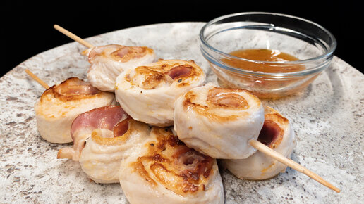 Куриное филе, бекон и шпажки. Всё что нужно для сочной закуски