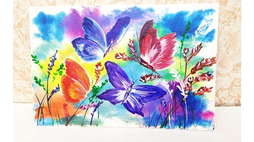 Как нарисовать бабочек акрилом. Картина для детской комнаты. Рисуем летний пейзаж.