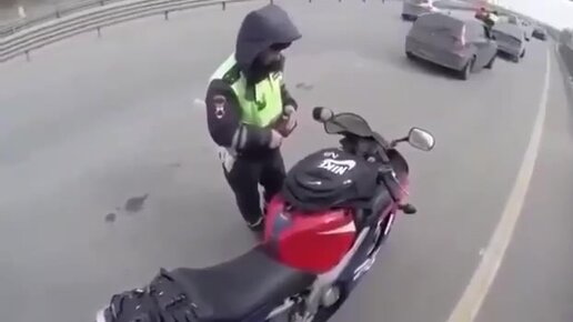 ДПС остановили мотоцикл и замеряют тонировку лобового стекла
