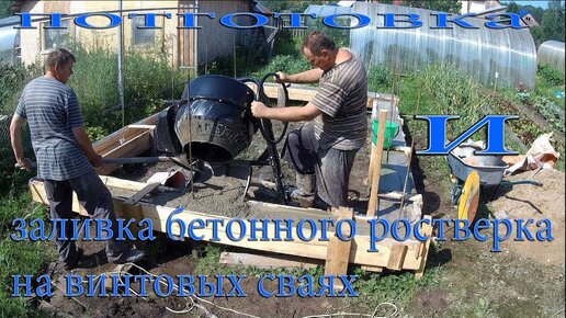 Заливка бетонного ростверка на винтовых сваях. Pouring concrete of raft Foundation on screw piles