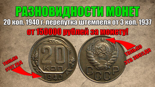 Цена от 100000 рублей за 20 копеек 1940 года перепутка, звезда разрезанная