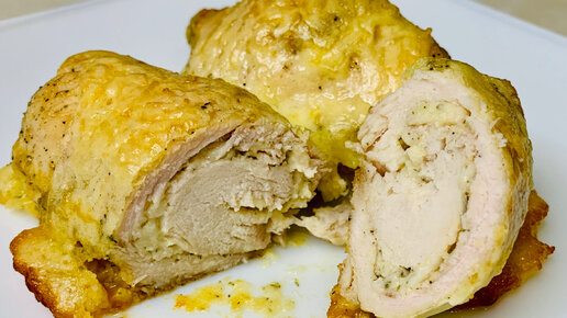 Рулетики из куриной грудки с сырной начинкой.