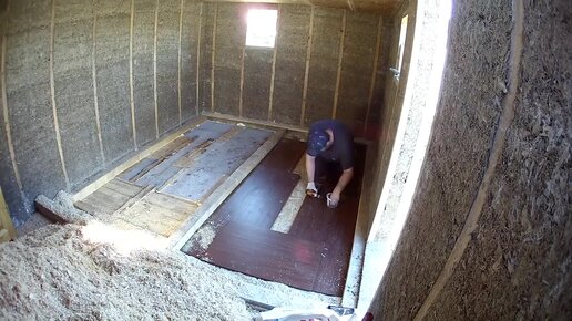 Тёплый сарай из арболита. Утепляю полы мелкой стружкой.
