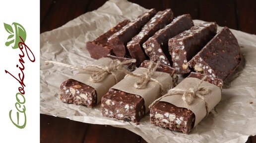 Хрустящие шоколадные батончики с зеленой гречкой vegan, без глютена, без сахара