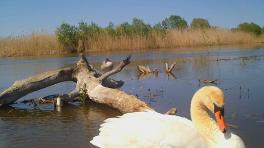 Неспешно и с достоинством: белый лебедь принимает ванну