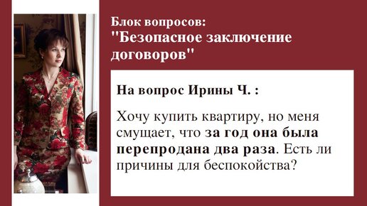 Ответ на вопрос Ирины Ч. : Безопасно ли купить квартиру, если за год она была перепродана два раза?
