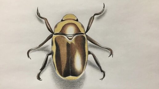 Золотой жук _ рисунок цветными карандашами _ gold bug in 3d _ Golden Beetle in 3d