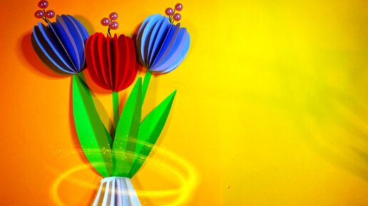 Объёмные и простые тюльпаны к 8 марта для мамы. Идея для детского творчества