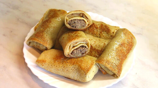 Блины фаршированные печенью с луком. Начинка из печени. Тесто для блинов.