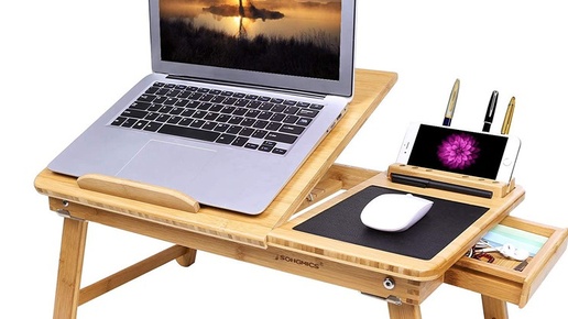 Столик для ноутбука, складной регулируемый, столик для завтрака на кровати из бамбука