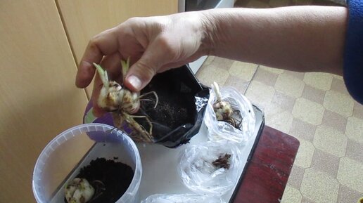 Посадка проросших лилий во временную ёмкость.
