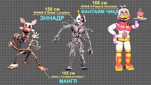 РАЗМЕРЫ АНИМАТРОНИКОВ ВО ВСЕЛЕННОЙ ФНАФ