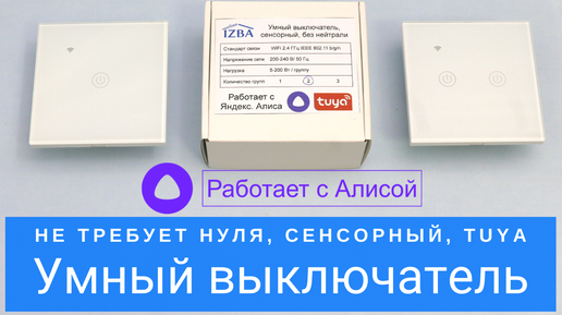 Умный выключатель Алиса сенсорный без нулевой линии TUYA c конденсатором, ставится вместо обычного