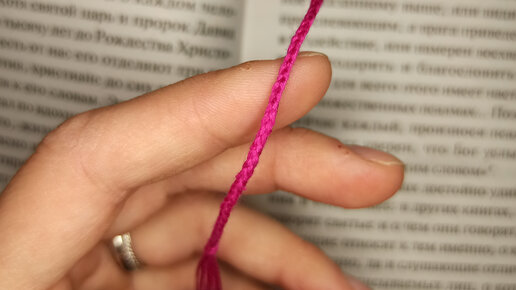 Понадобилась закладка в книгу, а под рукой были нитки. Вот такая хорошенькая вышла закладка🤗