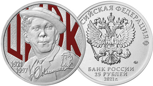Монета 25 рублей Творчество Юрия Никулина в цветном исполнении.