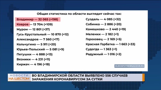 Во Владимирской области выявлено 556 случаев заражения коронавирусом за сутки