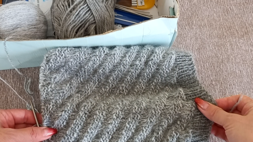 Вяжу шапку диагональным узором из "Пуха норки" и "Секрета успеха"