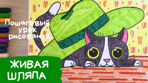 Живая шляпа рисунок. Котенок рисунок для детей. Как легко нарисовать котенка. Карандаши и краски.