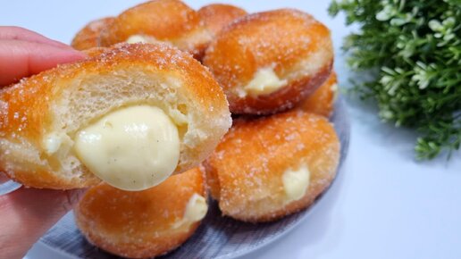 Пончики донатсы с Ванильным Заварным Кремом! Вкуснющие Берлинеры!
