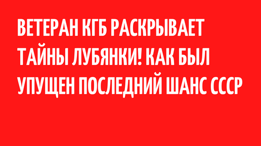 Ветеран КГБ раскрывает тайны Лубянки! Как был упущен последний шанс СССР